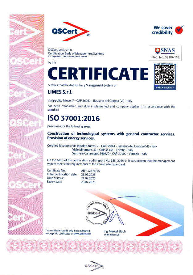 In data 21 luglio 2025, l’azienda ha ottenuto la certificazione ISO 37001, standard internazionale che definisce i requisiti per l’adozione di un sistema di gestione finalizzato alla prevenzione della corruzione, sia nel settore pubblico che in quello privato.